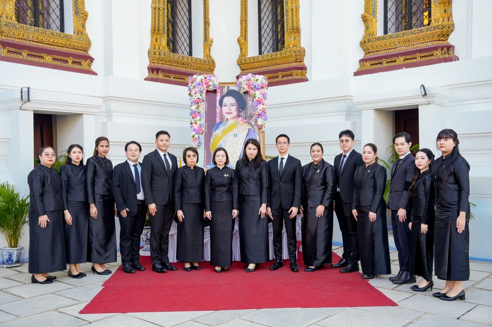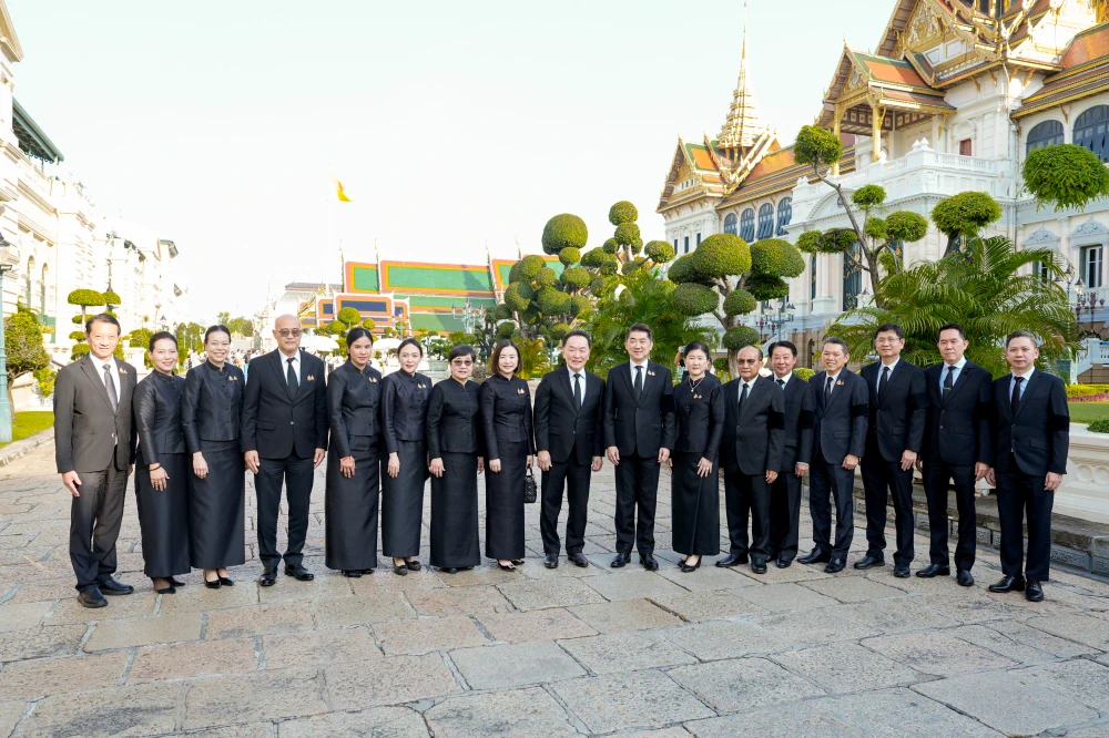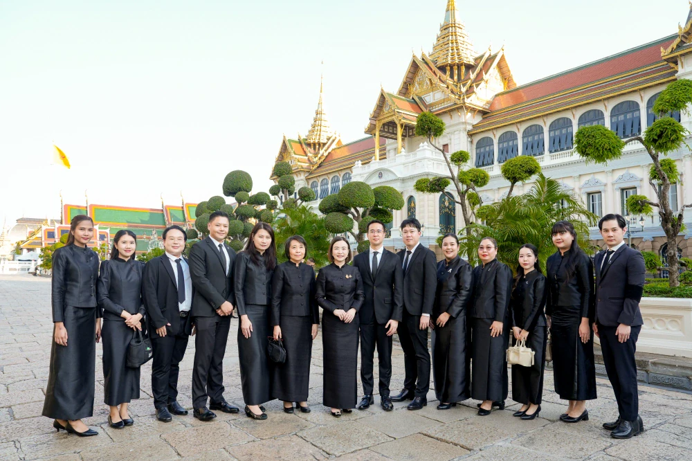 The executive team and staff of the CP Leadership Institute (CPLI), led by Ms. Pimonrat Reephattanavijitkul, Chief People Officer of Charoen Pokphand Group and Charoen Pokphand Foods Public Company Limited (CPF), and President of CPLI, proceeded to the Dusit Maha Prasat Throne Hall within the Grand Palace. The delegation performed a solemn ceremony to pay homage to the Royal Remains and laid a wreath before the Royal Urn of Her Majesty Queen Sirikit The Queen Mother. This act was performed to demonstrate their unwavering loyalty and to express their deepest gratitude for the boundless royal grace She bestowed upon the Thai people throughout Her lifetime.