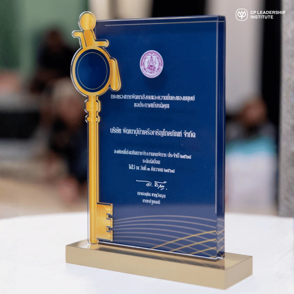 Leadership Development Charoen Pokphand Group Co., Ltd. (CPLI), represented by Mr. Phuriprat Bunnag, Vice President of Human Resources, accepted the honorary plaque for "Organization that Promotes Employment of Persons with Disabilities, 2025" at the "Excellent" level. The award was presented by Ms. Sonthaya Boonyaphusit, Director-General of the Department of Empowerment of Persons with Disabilities, who presided over the International Day of Persons with Disabilities 2025 ceremony at Challenger Hall, IMPACT Muang Thong Thani. This recognition honors private sector organizations that play a pivotal role in tangibly supporting and enhancing the quality of life for persons with disabilities.