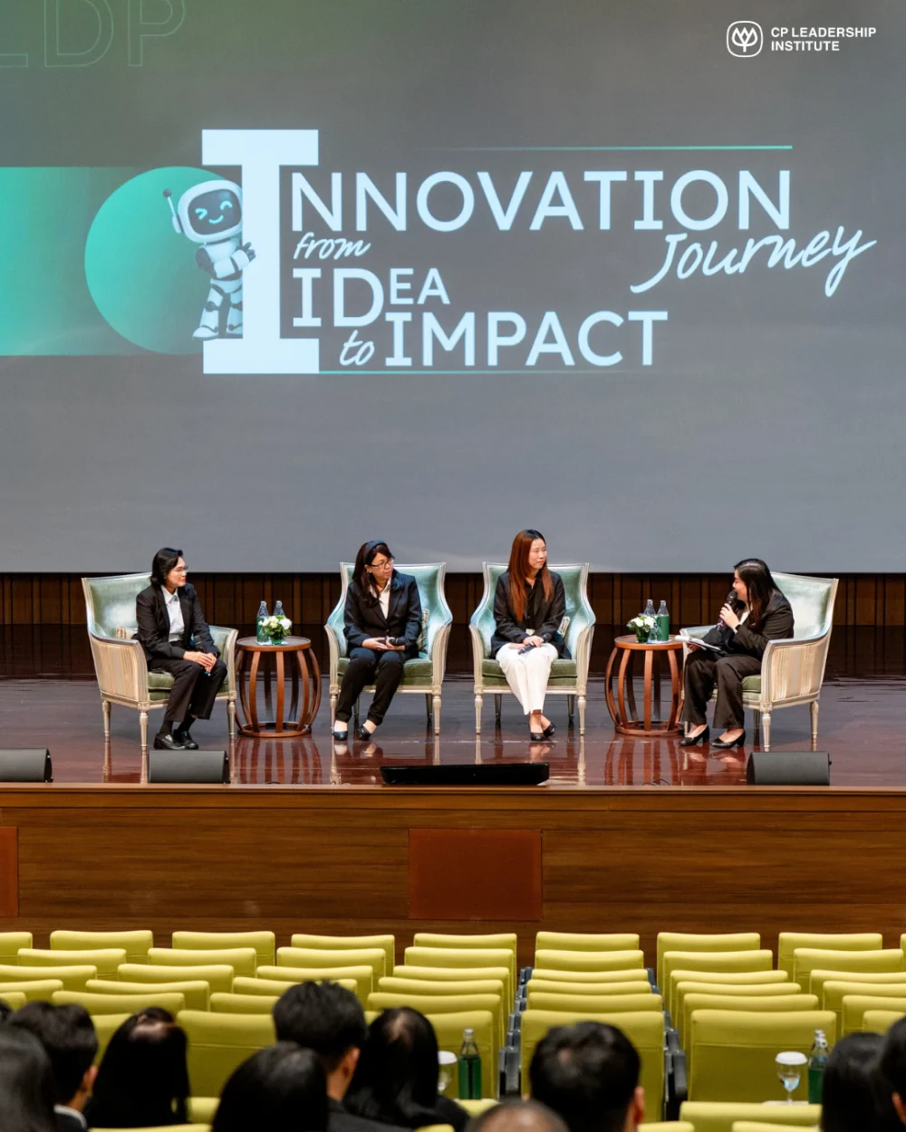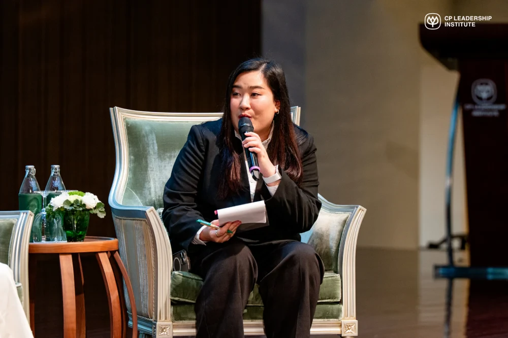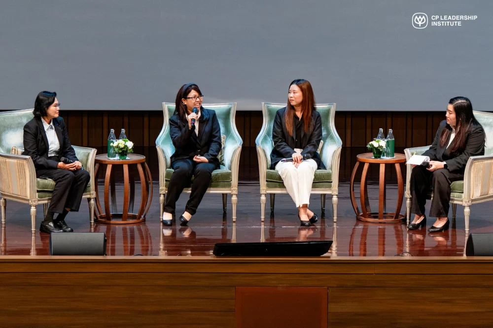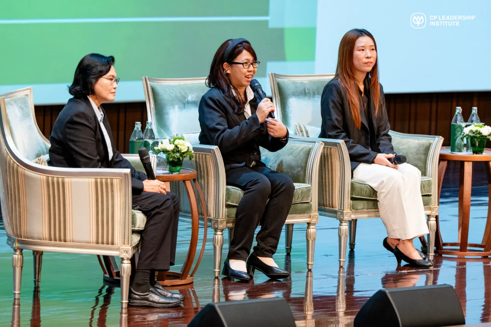 The session featured three distinguished young leaders: Ms. Chalita Kladnim from CPF, Ms. Siwaporn Maneesiri from CPPC, and Ms. Chinanun Khattiyawet from CP AXTRA. They shared the journeys behind their breakthrough projects, such as utilizing AI technology and advanced analytics to extract collagen peptides from waste materials, developing 45-day compostable packaging to address the plastic crisis, and implementing comprehensive data systems to empower B2B partners. These innovations demonstrate how complex challenges can be transformed into efficient solutions through strategic synergy and cutting-edge technology.